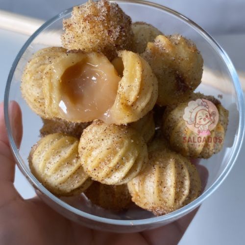 Meio cento de mini churros irresistíveis! Recheados, crocantes por fora e macios por dentro. Perfeitos para festas, eventos e cafés especiais.