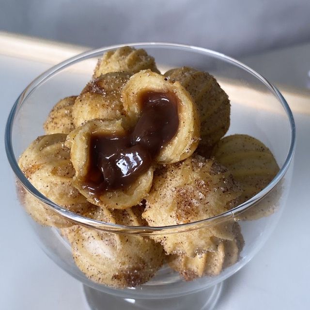 25 mini churros recheados com doce de leite ou chocolate. Deliciosos, macios e prontos para adoçar qualquer momento! Ideal para lanches ou pequenas comemorações.