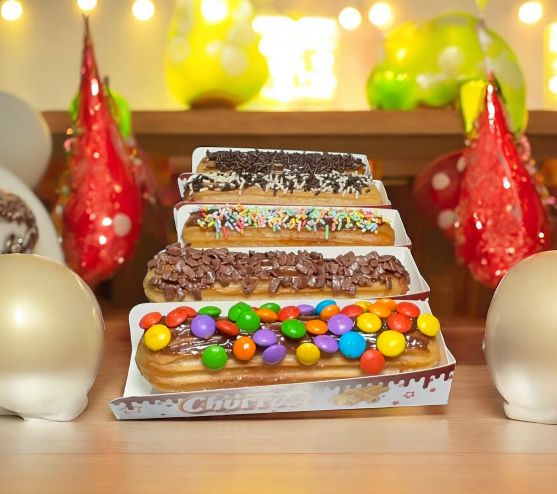 Mais sabor para festas maiores! Salgadinhos sequinhos e churros recheados.